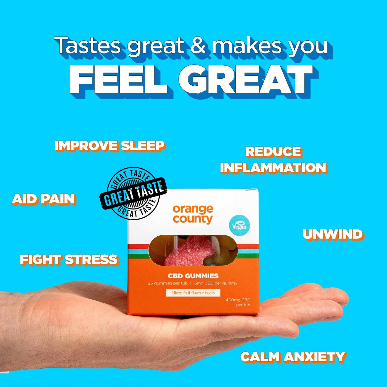 Every small tub of CBD gummy bears comes with 25 individual sweets in a mix of vibrant colours and delicious flavours.