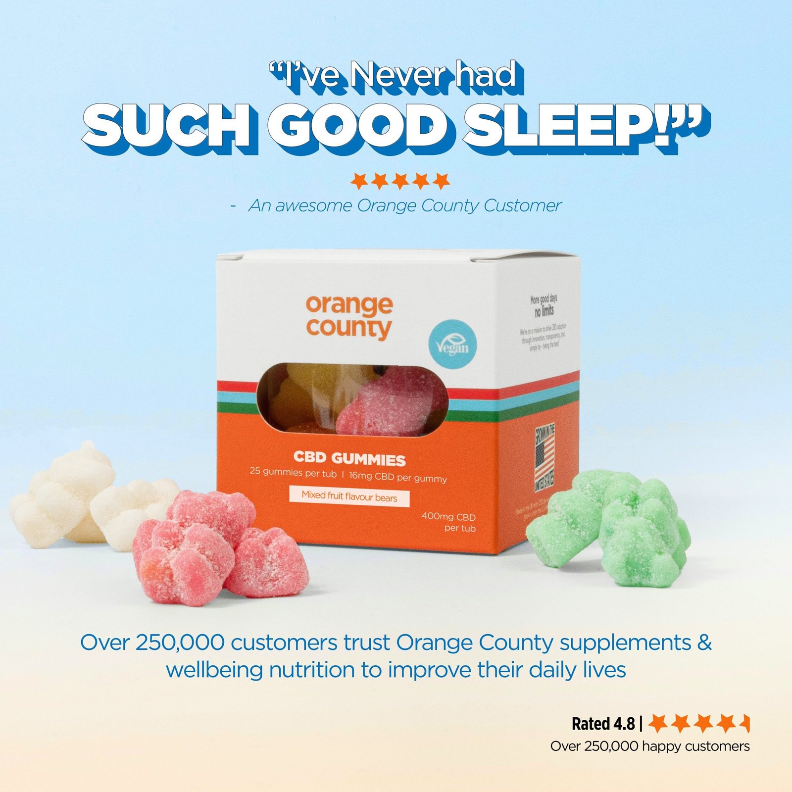 As each tub has a 6 month shelf life from opening there’s virtually no risk of waste, so you can enjoy your CBD gummies at your own pace.